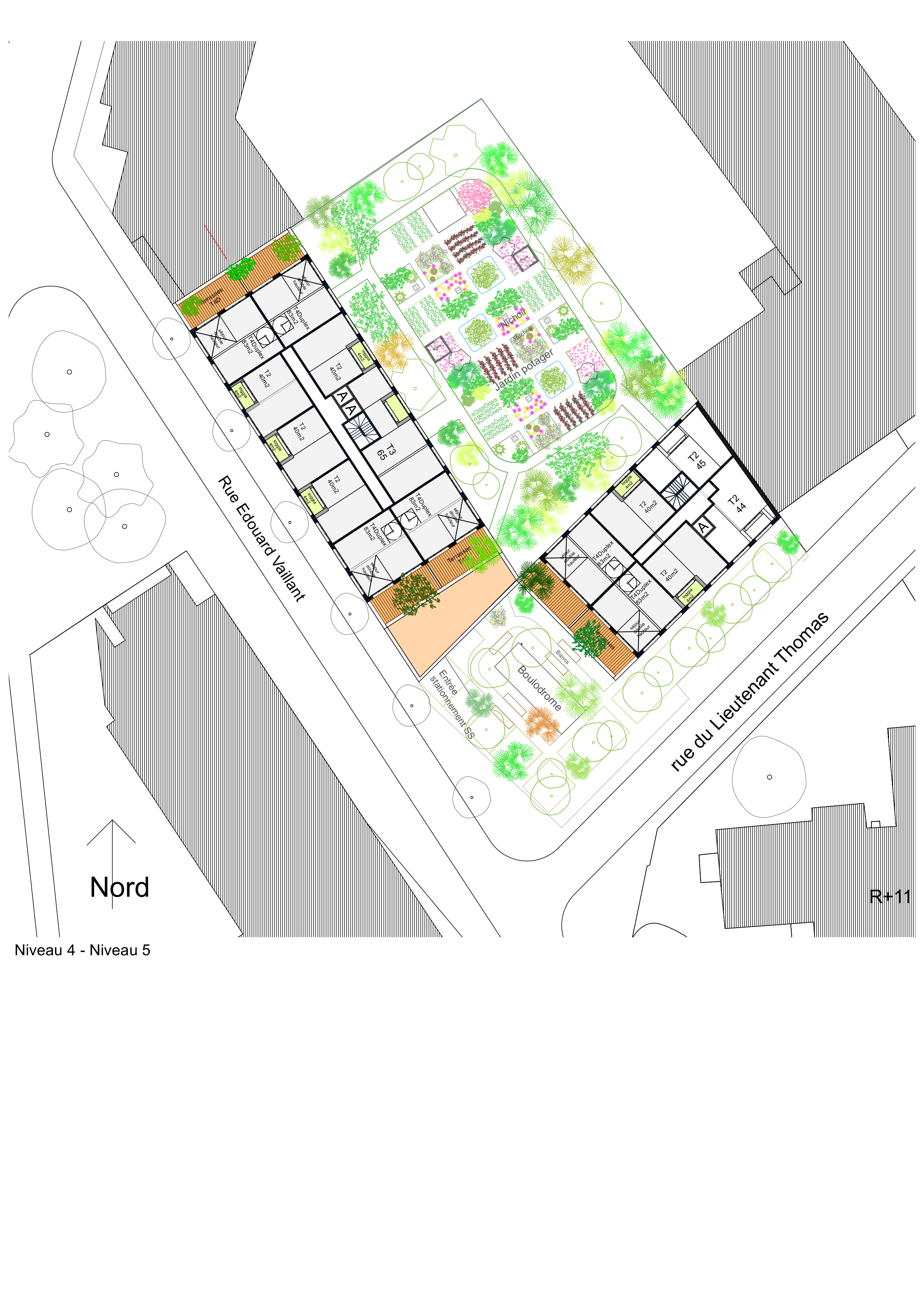 Construction neuve de 106 logements, commerces , jardins potagés partagés,